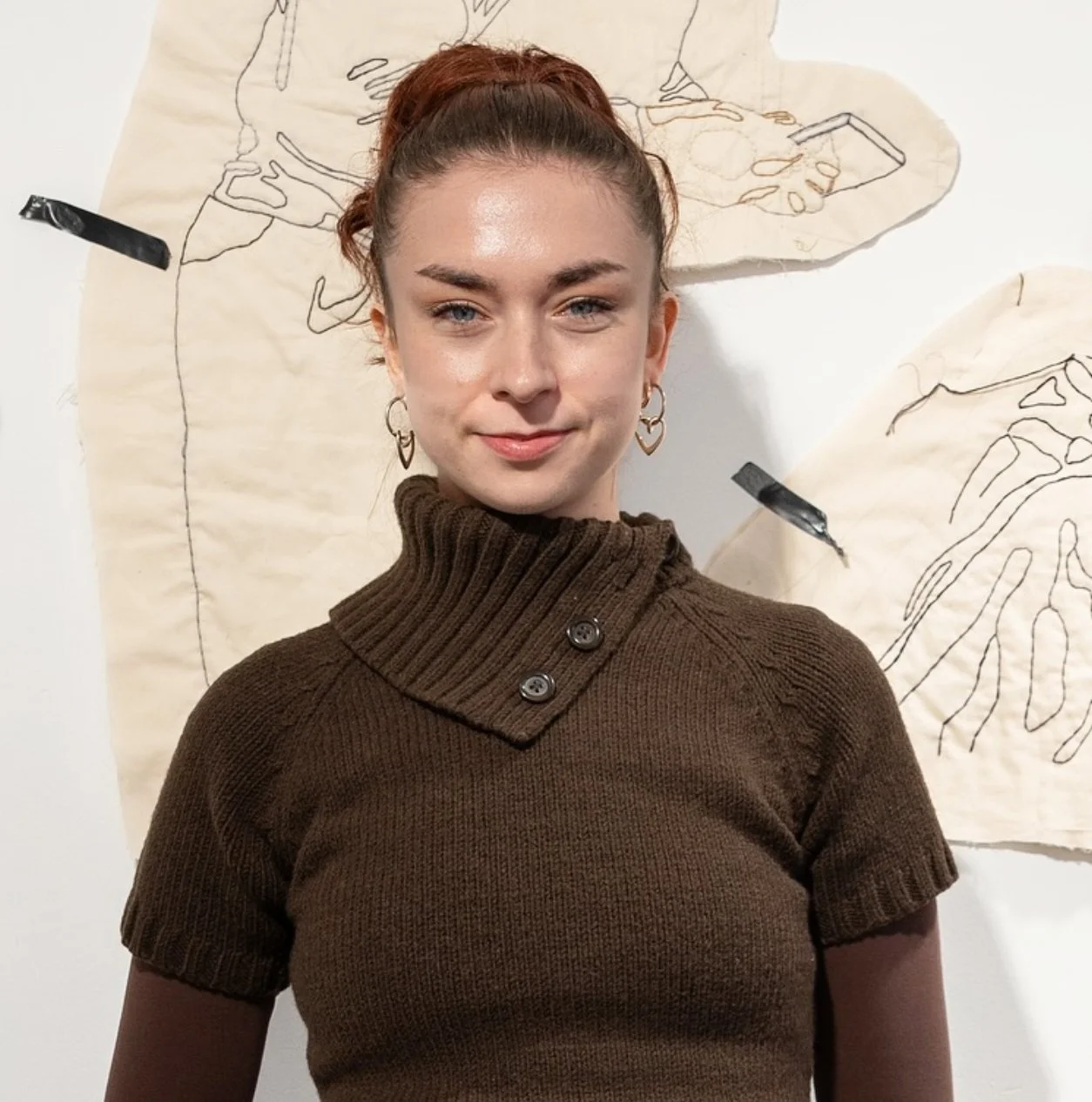 Cameron is interested in the intimacy between queer people and the natural world, and the way in which this can be used to reject perceptions of queerness being a modern or fallible idea, instead hailing it as an ancient and sacred thing. Her material focus centres around hand knit work, using textile to echo the softness and care she wishes to use to speak about queerness. Using these processes also allows her to resituate what is seen traditionally as ‘domestic craft’ within Fine Art spaces, using this as a tool to subvert the way that skilful craft work is viewed and appreciated.